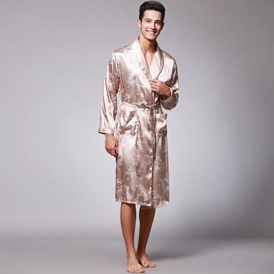 Heren Zomer Zijden Gewaden Mannelijke Senior Satijnen Nachtkleding Pyjama Lange Kimono Kamerjas Badjas Voor Man -Khaki B-2-XL