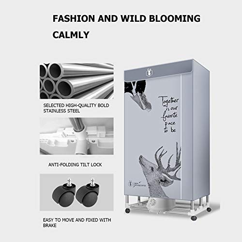 ☀ 560L Grote capaciteit: 2-laags ontwerp en gewaagde roestvrijstalen beugel kunt u tot 30 kg kleren tegelijk in de draagbare droger plaatsen, met een capaciteit van 560L, en er zijn vier universele wielen aan de onderkant van de droger , je kunt naar je vrij gewenste locatie verhuizen.