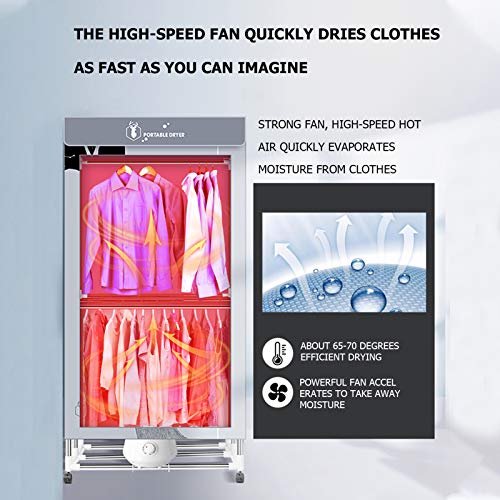 ☀ 1000W Droger Host: met behulp van PTC-keramische materiaal, snelle verwarming, hoge thermische efficiëntie, uniforme luchtuitgang en versnelt de droogsnelheid van kleding. De draaiknop regelt het hoofdgedeelte van de droger (30-180 minuten timer), dat eenvoudig en snel is.