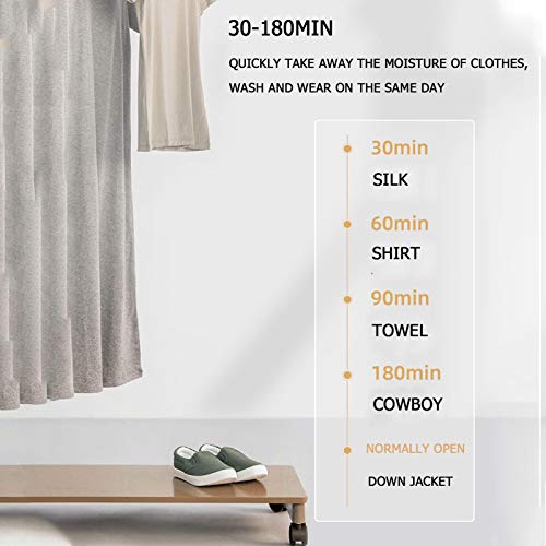 ☀ 1000W Droger Host: met behulp van PTC-keramische materiaal, snelle verwarming, hoge thermische efficiëntie, uniforme luchtuitgang en versnelt de droogsnelheid van kleding. De draaiknop regelt het hoofdgedeelte van de droger (0-180 minuten timer), die eenvoudig en snel te bedienen is.