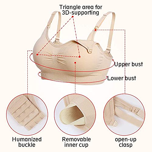 【Verstelbare bandjes】 : De 3D antislip bandjes van naadloze en boterzachte stof die opmerkelijk comfortabel is om te dragen en vrijwel onzichtbaar onder kleding. Zachte brede tilbanden aan de binnenkant van de naadloze voedingsbeha bieden ondersteuning voor de buste tijdens het voeden en voorkomen doorzakken