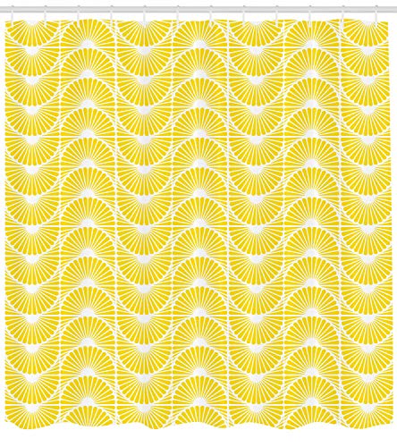 Specification: ABAKUHAUS Yellow and White Douchegordijn, retro Curves, stoffen badkamerdecoratieset met haakjes, 175 x 200 cm, Geel Wit