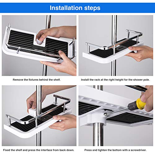 Eenvoudig te installeren: doucherek ontworpen in een handomdraai, eenvoudige installatie en geen boren in de muur. Badkamer doucheplank gecombineerd met 3 paar verschillende maten gespen voor 22 mm 24 mm 25 mm douchestang, en we hebben 2 paar pakkingen (de dikte is 1 mm en 2 mm) toegevoegd aan de nieuwe productverpakking, dus ons doucherek past op een douchestang zo klein als 18 mm in diameter