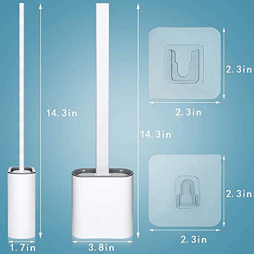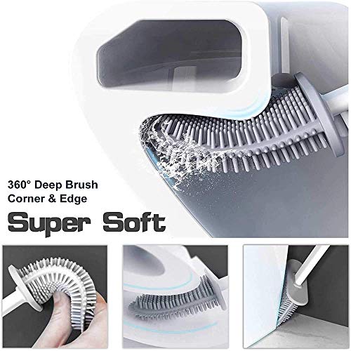 [Hoogwaardige siliconen WC-borstel]: comfortabel antisliphandvatontwerp, hoogwaardig ABS + zachte borstelkop. Deze superzachte toiletborstel kan diepe gaten in leidingen en leidingen doordringen en gemakkelijk vlekken in hoeken en gaten verwijderen. De platte toiletborstelkop kan vrij worden gebogen. U kunt moeilijk bereikbare plaatsen bereiken en een perfect reinigingseffect krijgen, gemakkelijk schrobben en resten in de kom verwijderen.