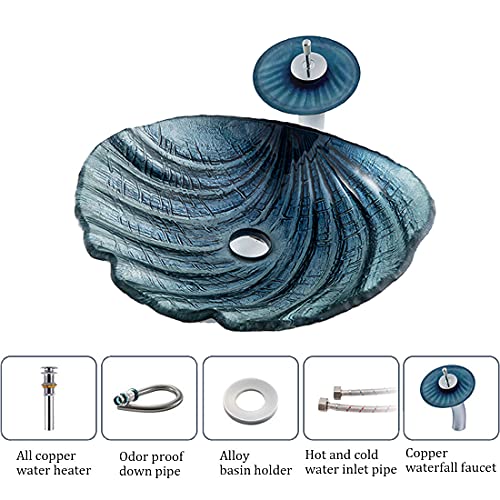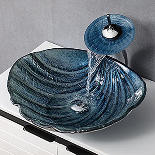 Specification: Badkamer Artistieke Glazen Wastafel, Modern Huis en Commerciële Schelpdieren Golf Gehard Glazen Wastafel Met Waterval…