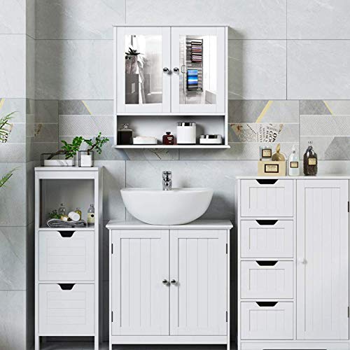 🌹 ⭐ 【Praktische kast】 2 planken voor opslag van verschillende dingen, dient als multifunctionele container en badkamer ingerichte kast. Genoeg ruimte voor toiletpapier, handdoeken, wasmiddel, wasmiddel en andere kleine voorwerpen.