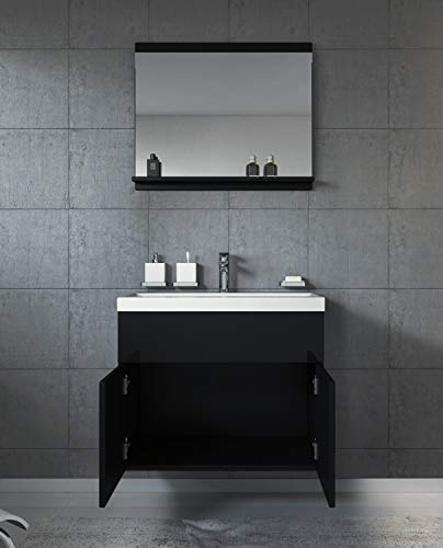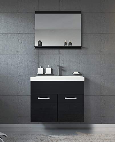 Specification: Badkamermeubelset Montreal 02 60 cm wastafel hoogglans zwart – spiegel meubel badkamermeubel