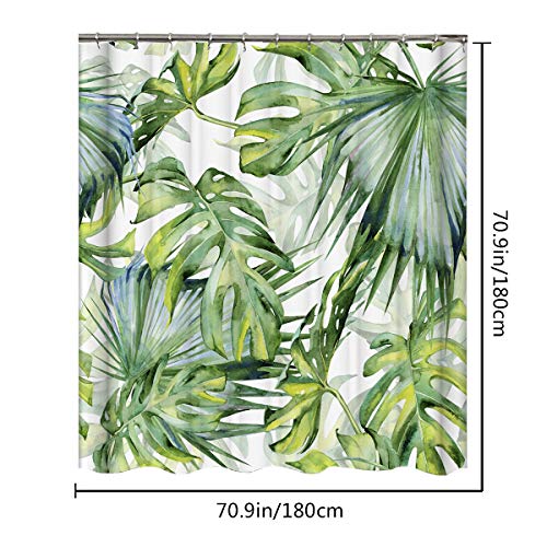 Specification: Douchegordijn met bladeren, groen waterdicht anti-schimmel douchegordijn jungle tropisch bedrijf douchegordijn met 12…