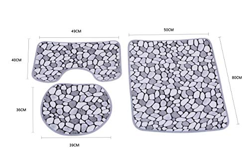 Specification: Euro Tische Badmat set antislip en wasbaar bestaande uit wc-mat, dekselhoes en badmat – badkamerset 3-delig (steen-look)