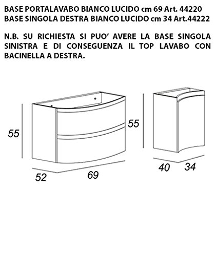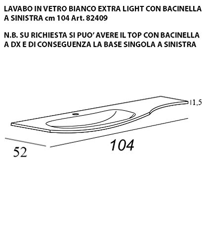 Specification: Hangkast Vague wit, 104 cm, alleen onderkast met glazen wastafel
