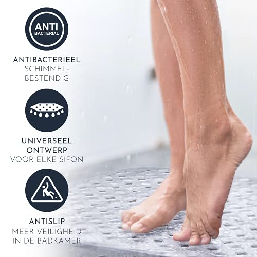 MOLD? GEEN KANS – De anti-slip mat douche is antibacterieel, schimmelbestendig & machinewasbaar op 30 °. Extra grote gaten van de badmat kinderen laten het water optimaal circuleren en weglopen – ongeacht waar de afvoer zich bevindt!