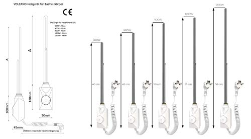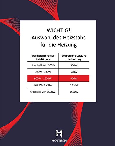 Specification: Hottech Verwarmingselement, verwarmingspatroon, VOLCANOplus 900 watt, wit, met water- en luchttemperatuurregeling voor…