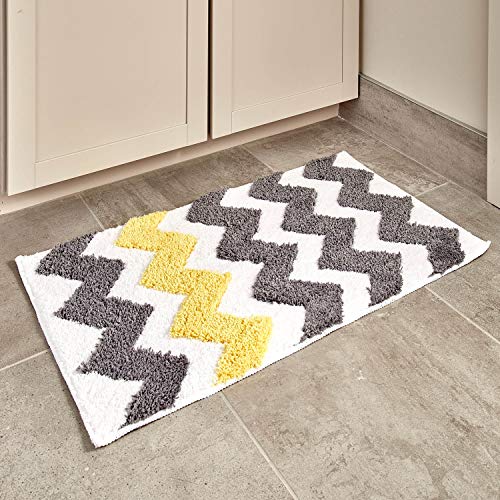 Specification: iDesign Chevron antislip badkamer en douchemat met Zig-Zag patroon, gemaakt van microvezel polyester, grijs/geel, 86,4 x…