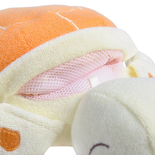 Triff Taylor! – De pluche vriend om te spelen en te baden. De SoapSox is een leuk 2-in-1 plezier, want de knuffels kun je ook naar de badkuip meenemen. Knuffelen, knuffelen en spelen de hele dag en als het tijd is voor de badkuip, kan het knuffeldier eenvoudig meenemen. De SoapSox biedt comfort en zijn schattige vrienden om opgewonnen kinderen tijdens het baden te kalmeren. Een gepatenteerd netvak voor zeep verandert je favoriete SoapSox in een schuimende washandje – vul gewoon de favoriete zeep in en druk op de SoapSox. Dat is de manier waarop kinderen van het wassen houden. De SoapSox bestaat uit antimicrobiële spons, kunnen in de wasmachine op een zachte cyclus worden gereinigd en kan bij lage temperatuur in de droger worden gedroogd. Je kunt het snoer echter ook door de lus trekken en aan de bovenkant van het dier samenbinden en de SoapSox heel eenvoudig ophangen om te drogen. Afmetingen: ca. 28 x 15 x 8 cm.