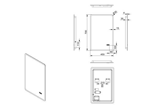 Montage: 1 keer aftekenen, 2 gaten boren, pluggen en schroeven plaatsen en spiegel ophangen – klaar. Sluit de voorgemonteerde elektrische aansluitdoos met een glansklem aan op de 230V-lijn. Montagemateriaal en glansklem bij de levering inbegrepen