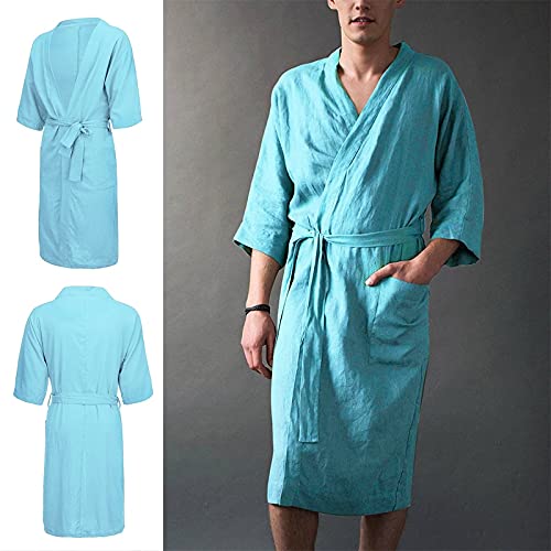 Specification: Mannen Katoen Linnen Badjas Lange Stijl Pyjama Zachte Comfortabele Gewaad Nachtkleding Herfst Casual Charmante Gown…