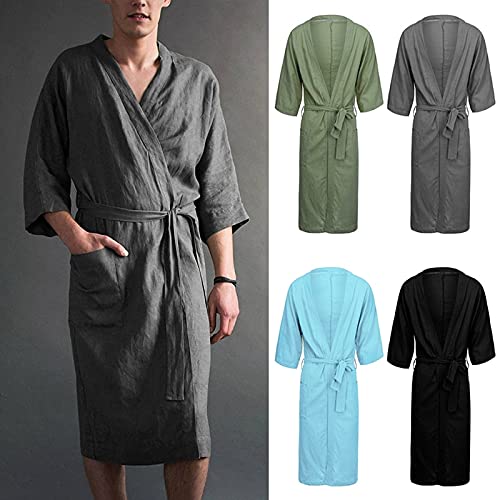 Katoenen linnen badjas voor heren Lange pyjama’s Zachte comfortabele badjas Nachtkleding Herfst Casual Charmante jurk Loungewear Grote maten