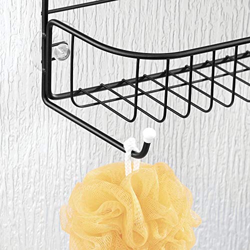 EENVOUDIGE INSTALLATIE: Het doucherek met douchemanden kan eenvoudig in de douche worden geplaatst. Het heeft 2 haken waaraan het aan de bovenkant van de deur kan worden gehangen en de zuignappen houden het rek op zijn plek.