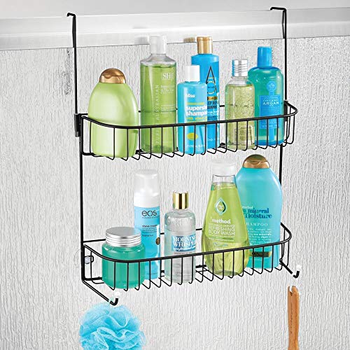 Specification: mDesign – Doucherek – voor shampoo, zeep, scheermesjes en meer – hangend/met haken en zuignappen/deurbevestiging – mat…