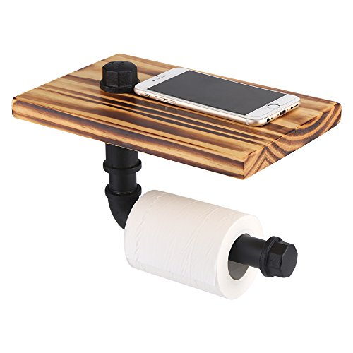 Specification: Multifunctionele ijzerpijp Wandmontage Rolpapierhouder Verwijderbare houten plaat Telefoonplankrek Badkamer…