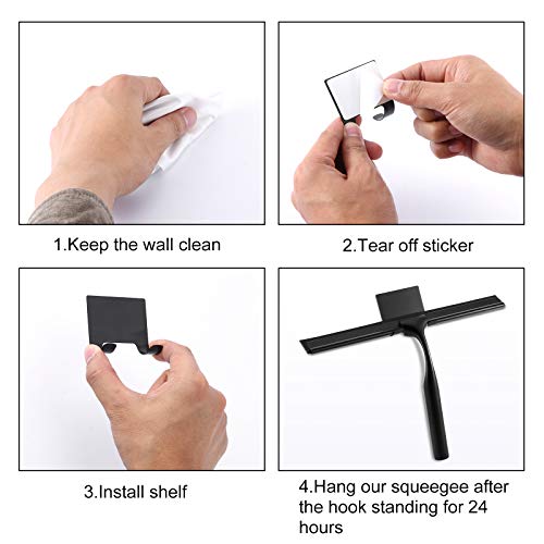 【Eenvoudig te bedienen en op te bergen.】 Met een set waterdichte roestvrijstalen kleefhaken kan de douche-rakel voor een snelle toegang en een eenvoudig gebruik bijna overal worden bewaard.