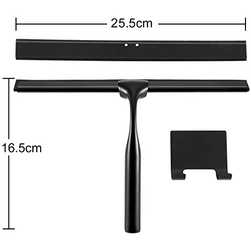 【Ergonomisch T-vormig design】 De T-vormige handgreep biedt extra comfort en ergonomie en is gemakkelijk vast te houden. De van zinklegering en roestvrij staal gemaakte glazen rakel in mat zwart bekoort door zijn tijdloze en elegante design.