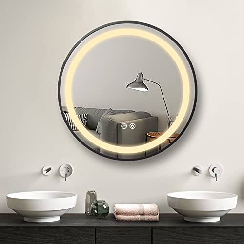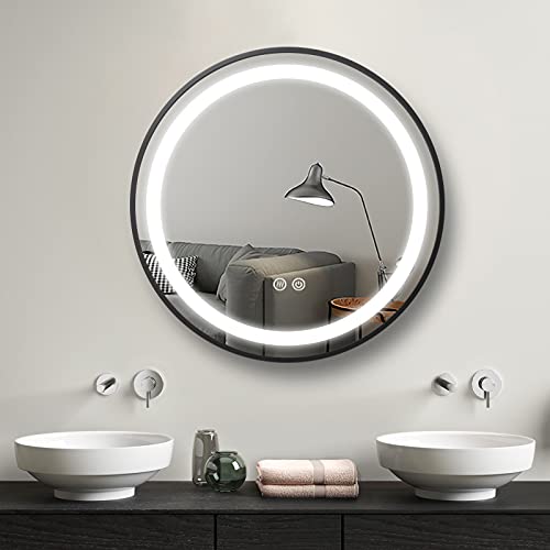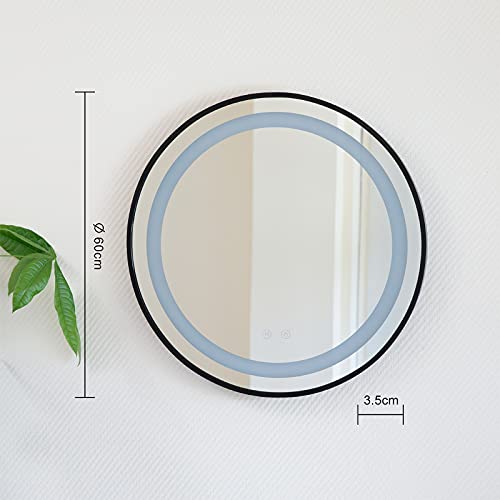 Specification: PUCHIKA Ronde LED badkamerspiegel wandspiegel met hoogwaardig aluminium frame in zwart, badkamerspiegel met verlichting…