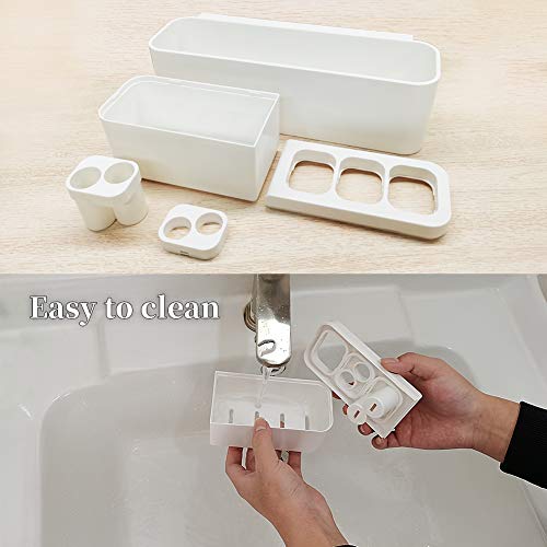 Eenvoudig en ruimtebesparend: vereenvoudig je leven met een eenvoudige tandenborstel-caddy die een betere visuele ruimte in je badkamer biedt. Bovendien past de witte kleur bij vele decoratiestijlen. Maak uw badkamer beter en bespaar ruimte.