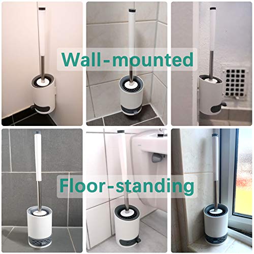 [Twee plaatsingsopties & Zorgeloos Service] U kunt de toiletpot reinigingshouder met 2 zuignappen op de verschillende muren plaatsen, zonder sporen achter te laten. Het kan ook op de vloer worden geplaatst als een vrijstaande badkamerborstel. De hoge kwaliteit grijs toiletborstel set bieden een 365 dagen garantie na verkoop , neem contact met ons op als u vragen heeft. Geen probleem.