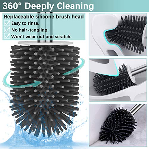[360° Efficiënte dieptereiniging] Deze siliconen toiletborstel beschikt hij over dichte TPR zachte borstelharen, kun je moeilijk bereikbare plaatsen rondom en onder de velg grondig reinigen. De silicone borstelkop kan diep in buizen en groeven binnendringen en gemakkelijk dode hoekvlekken verwijderen. In tegenstelling tot de plastic opzetborstel, de siliconen rubberen kop draagt zich nooit af en verandert zijn vorm en behoudt de perfecte reiniging.
