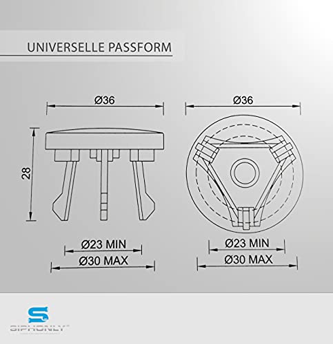 ✅ Geschikt voor alle spoelopeningen met een diameter van 23-30 mm.