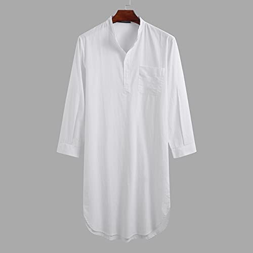 Slaapgewaden voor heren Effen kleur Katoen Lange mouw Comfort O-hals Vrije tijd Nachtjapon Badjassen voor heren Homewear Grote maten