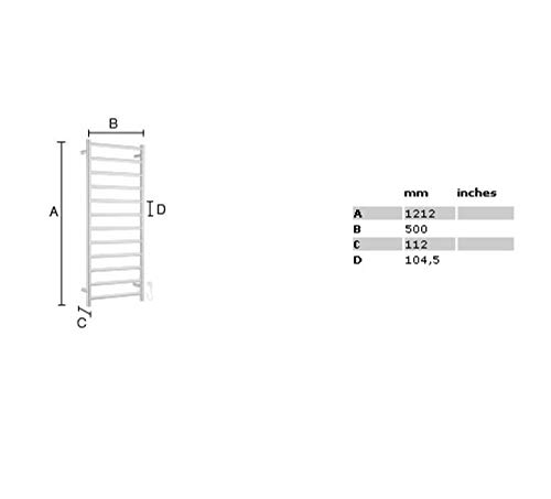 Specification: Smedbo FK701 Dry handdoekwarmer, elektrisch hoog roestvrij staal gepolijst 120 W