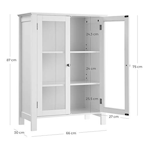 Specification: VASAGLE opbergkast, badkamerkast, keukenkast, met 2 transparante deuren, 66 x 30 x 87 cm, 2 plankniveaus (verstelbaar in…