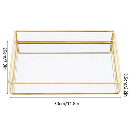 【Kenmerk】 Redelijk formaat en lichtgewicht, draagbaar om te dragen. Deze rechthoekige gouden glazen opbergdoos heeft een grote capaciteit om allerlei soorten desktop-items te bevatten