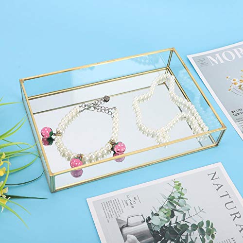 【Oppervlak】 Messing randen, met floatglas, met de hand gelast, tonen het nauwgezette vakmanschap, is perfect om je sieraden, snuisterijen en souvenirs te tonen