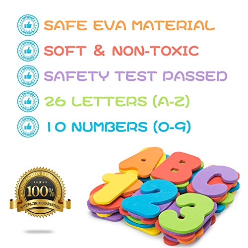 ❤【Veilig EVA-Materiaal】- De gezondheid van kinderen is onze grootste zorg, dus we gebruiken alleen veilige EVA-materialen. Dit pakket bevat 26 drijvende letters (A-Z) en 10 drijvende nummers (0-9) in 6 kleuren, die zacht, niet giftig, BPA-vrij en getest op veiligheid zijn.
