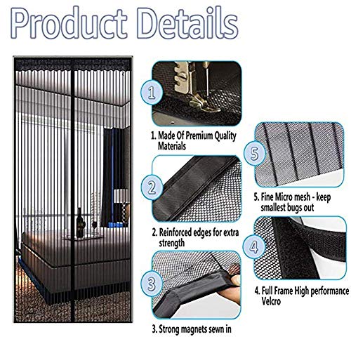 Specification: YANGSANJIN zwart magnetisch vliegengordijn met duurzaam mesh-muggengordijn, eenvoudige installatie, Zwart, 90 x 210 cm…
